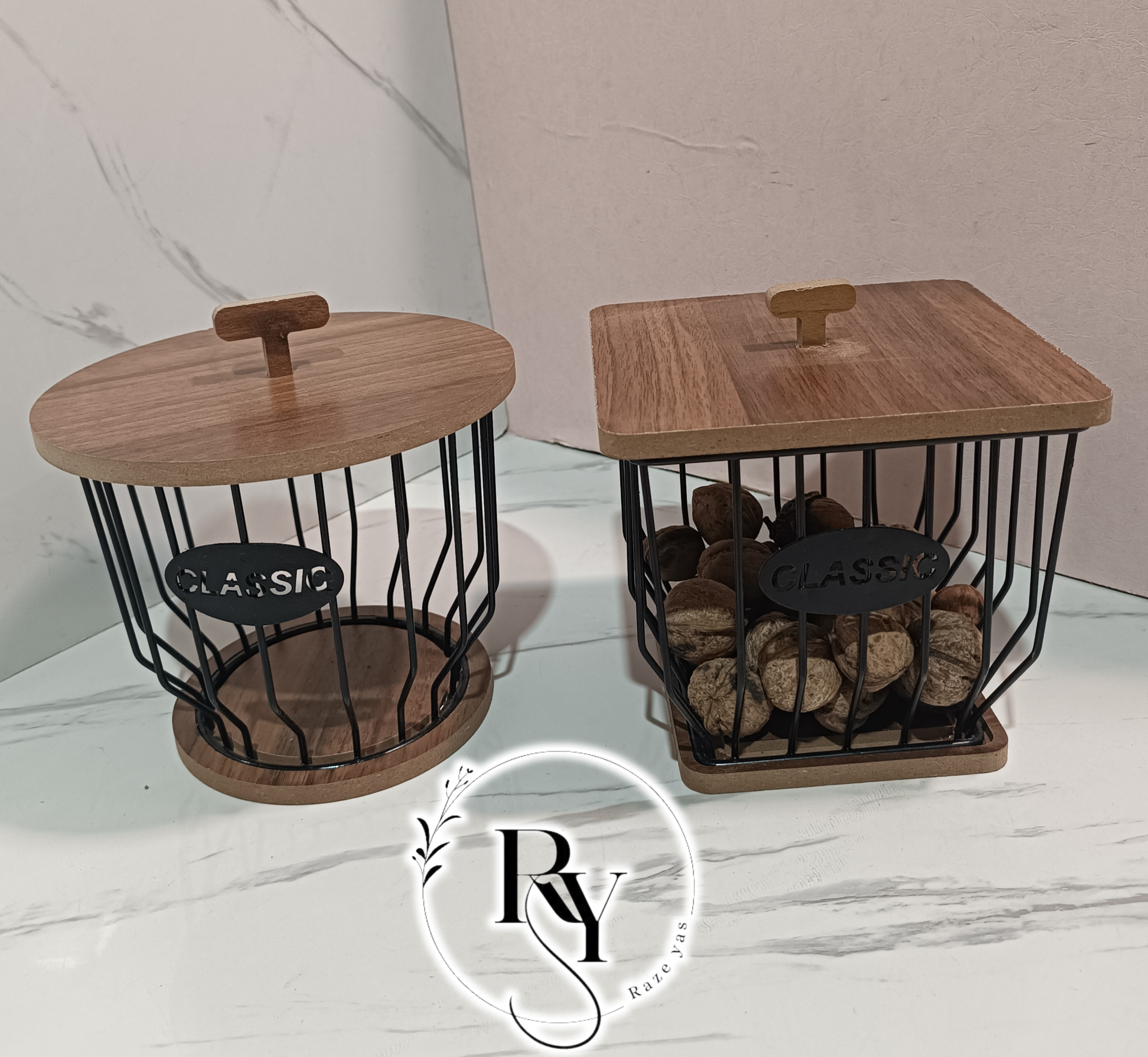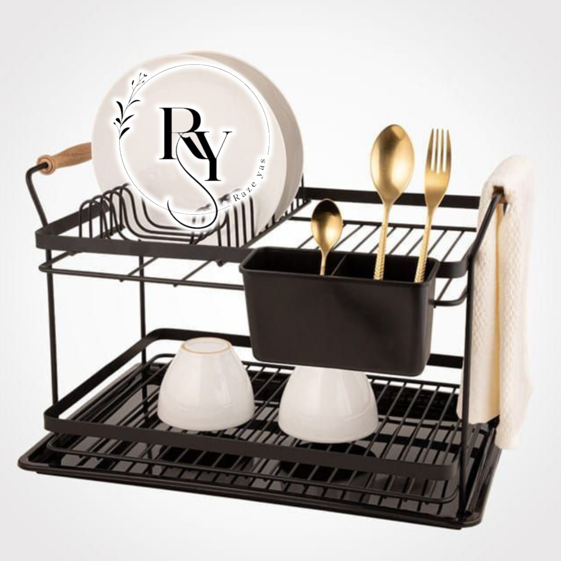 جاظرفی ۲طبقه مشکی دسته چوبی